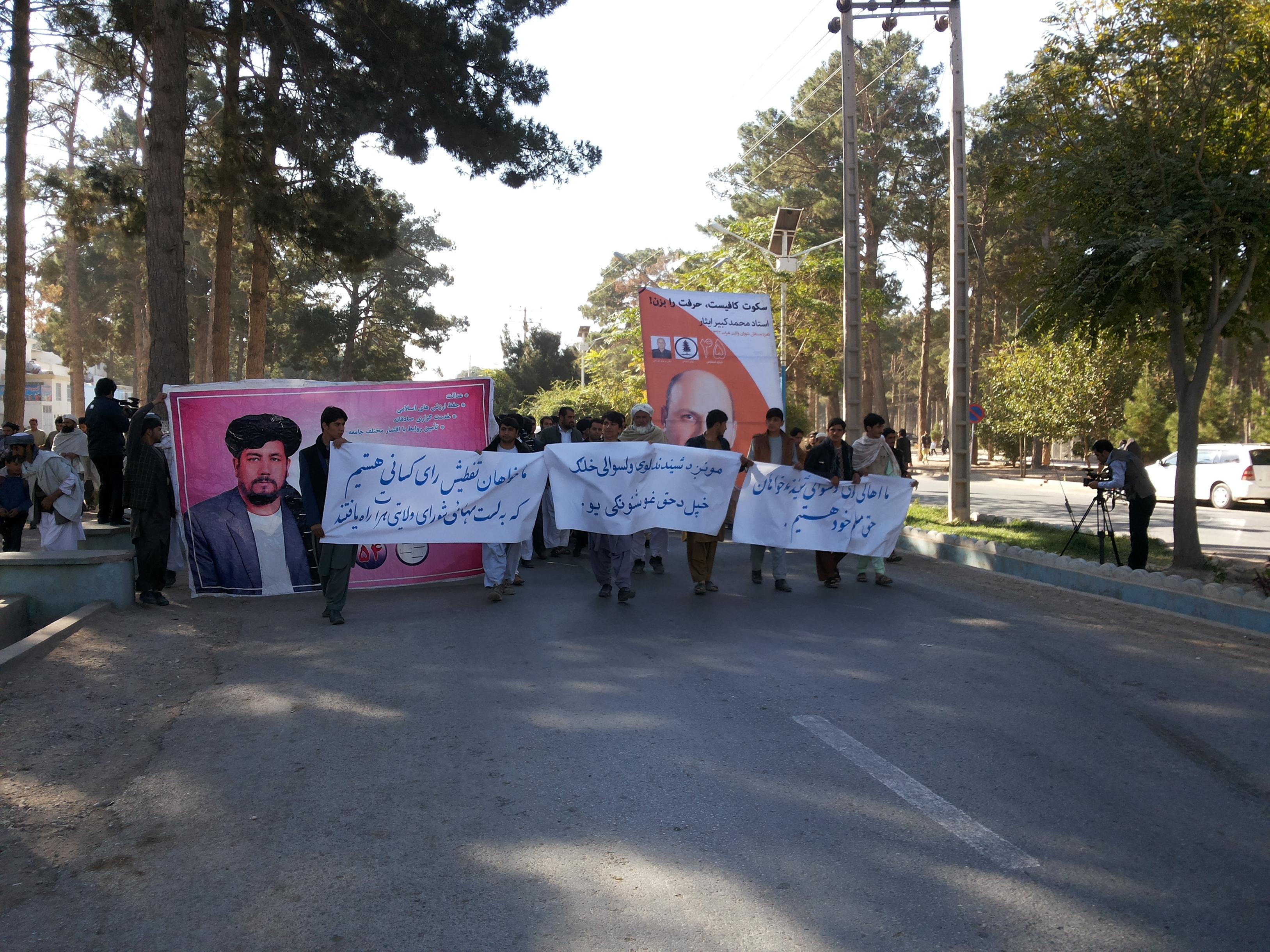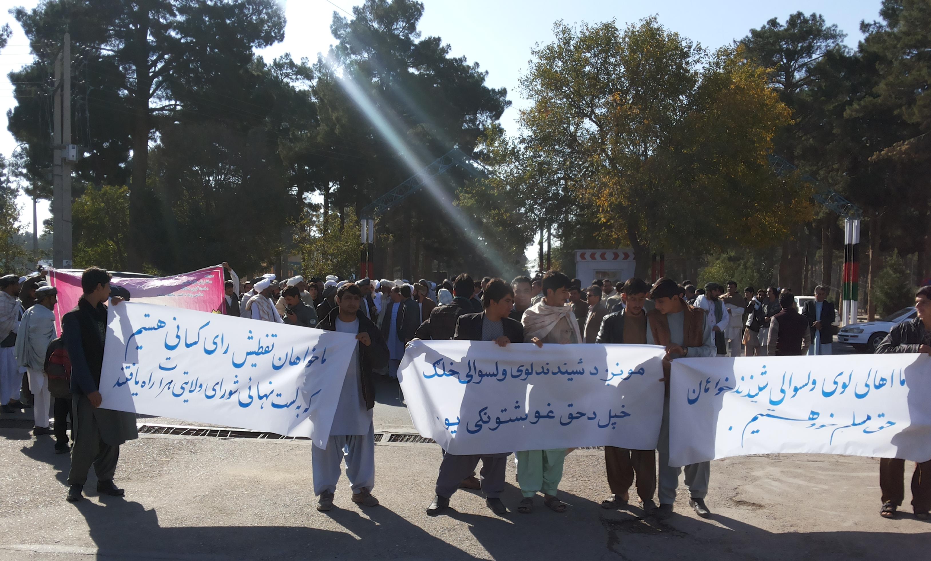 شماری هواداران برخی از نامزدان شورای ولایتی در هرات دراعتراض به اعلان نتایج انتخابات شورای ولایتی هرات امروز درمقابل دفتر والی آنولایت تجمع نمودند.